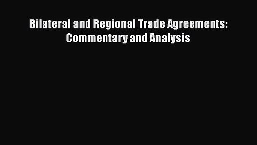 Bilateral And Regional Trade Agreements Commentary And Analysis