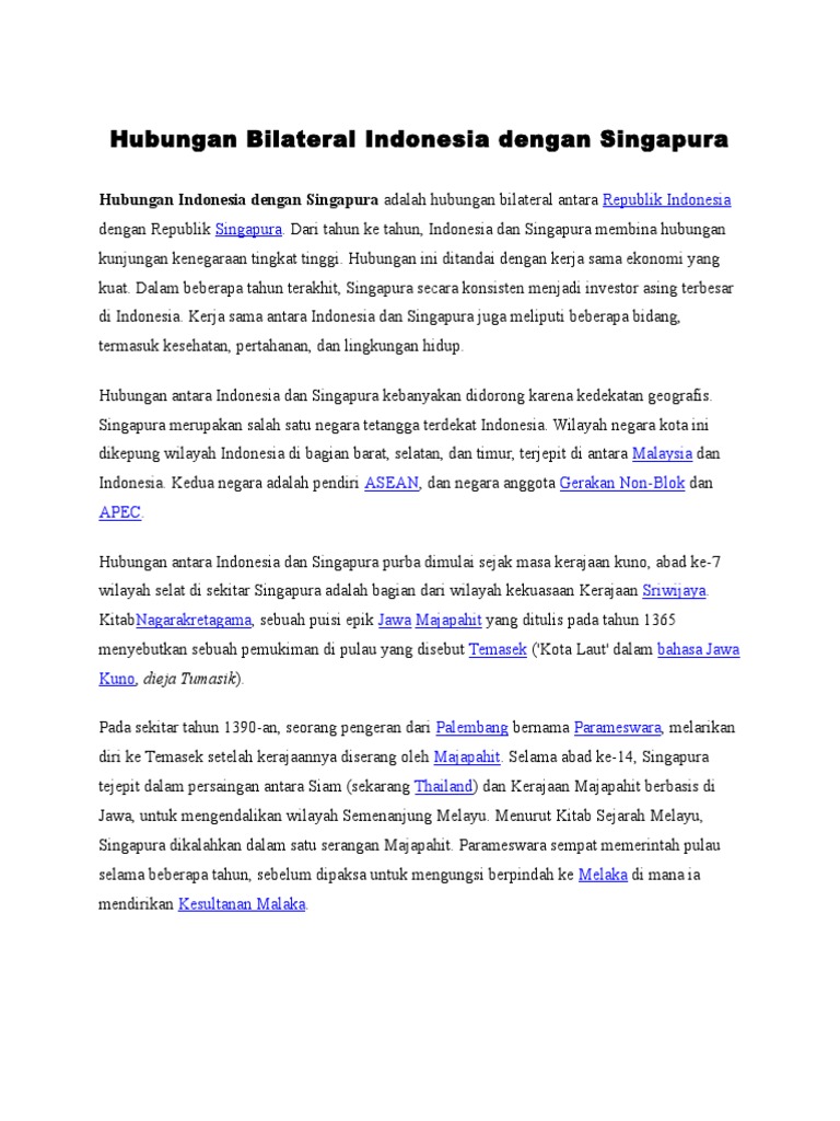 Hubungan Bilateral Indonesia Dengan Singapura