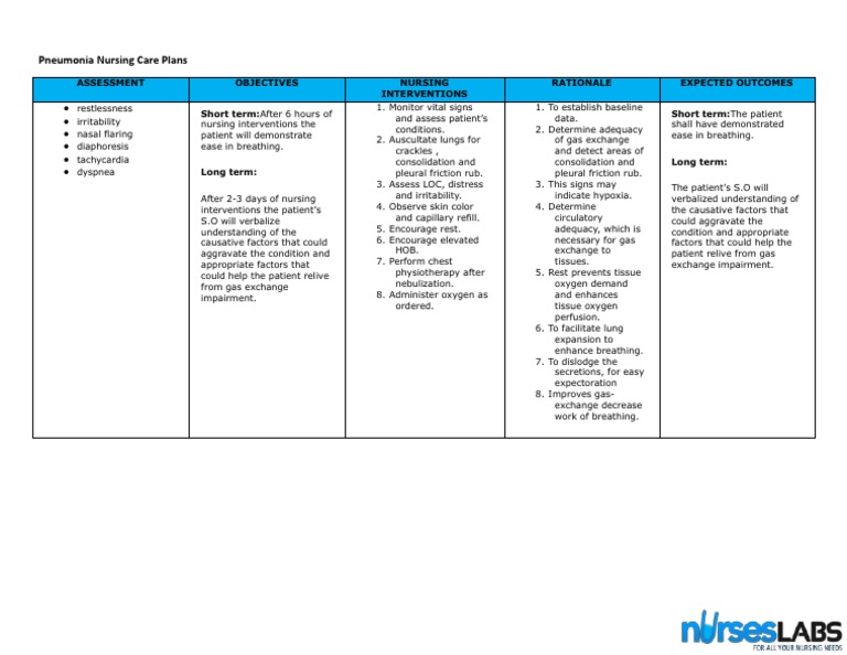 Pneumonia Nursing Care Plans 10 Nursing Diagnosis Nurseslabs