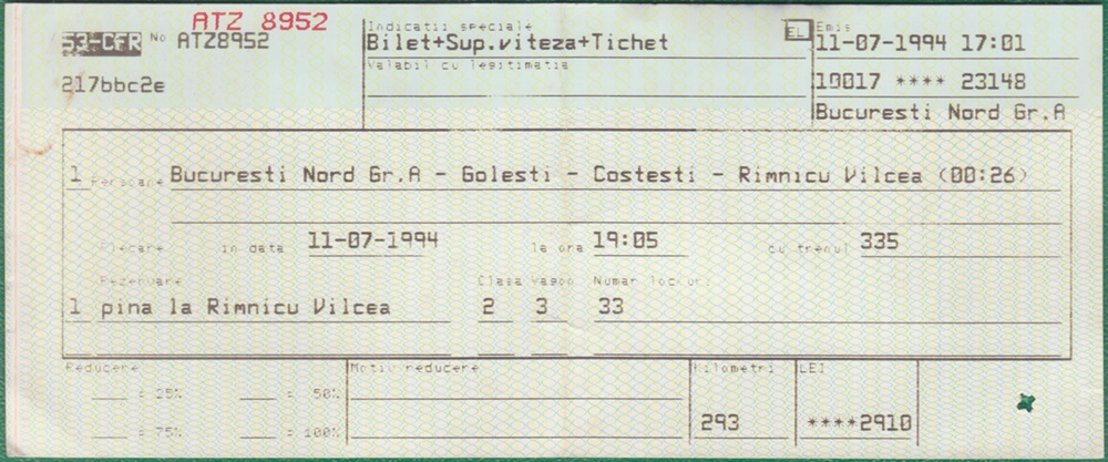 Ferfierkaartsje Inter Regio Bilet Intreg Bucuresti Nord