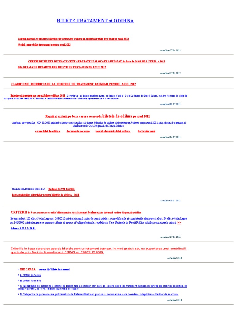 Biletele De Tratament Pentru Angajati Si Pensionari Legislatie