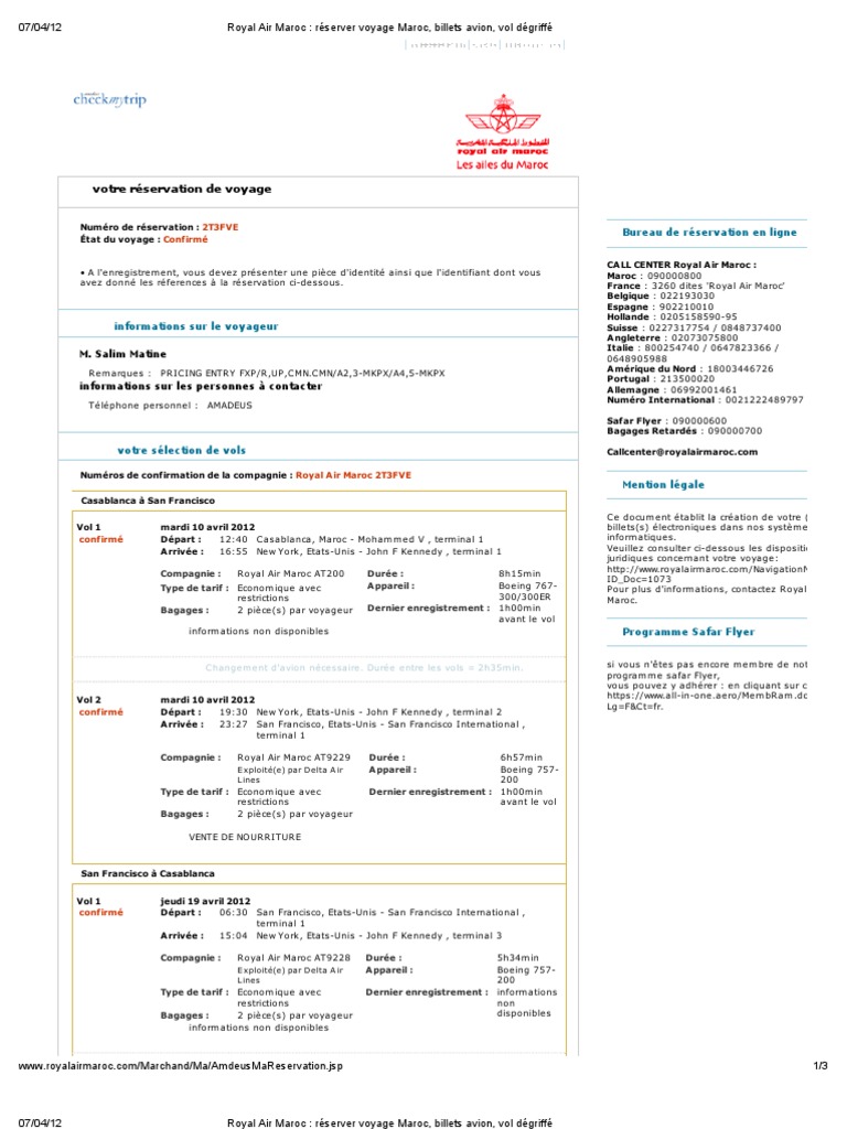 Royal Air Maroc Online Reservation Pdf Maroc Aeroport