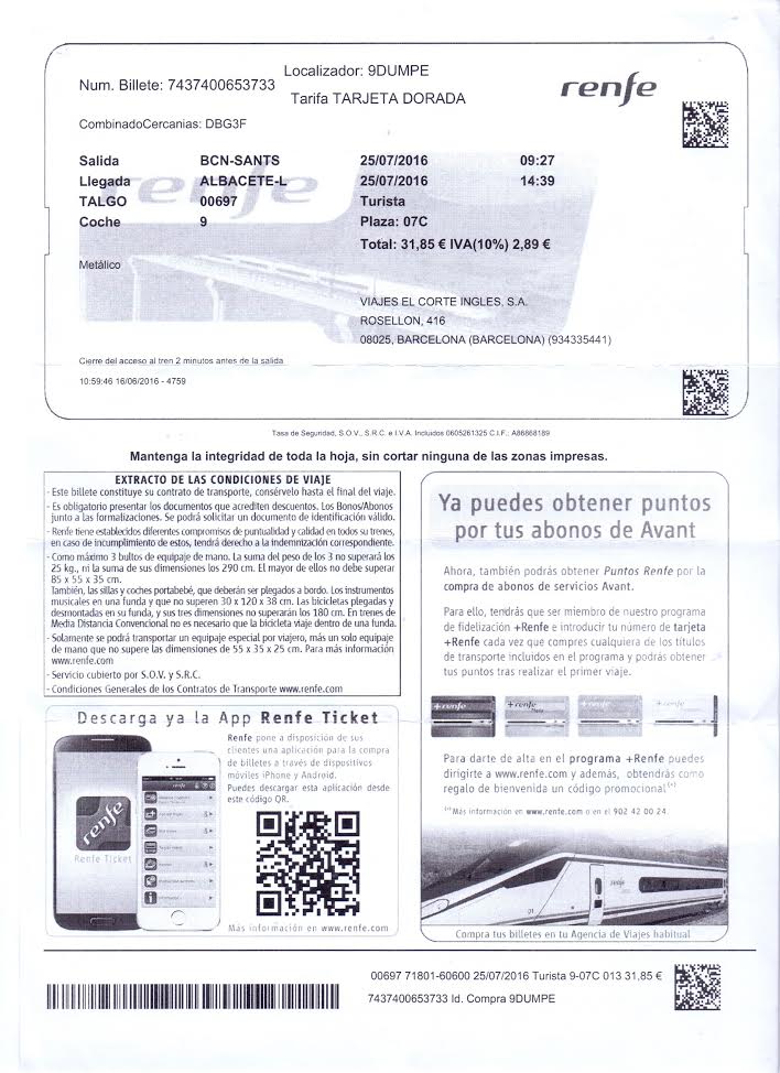 The Traveler S Drawer Renfe Billete Para El Tren Talgo De