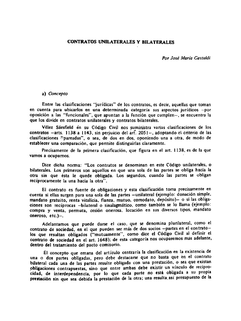 Contratos Unilaterales Y Bilaterales Derecho Contractual