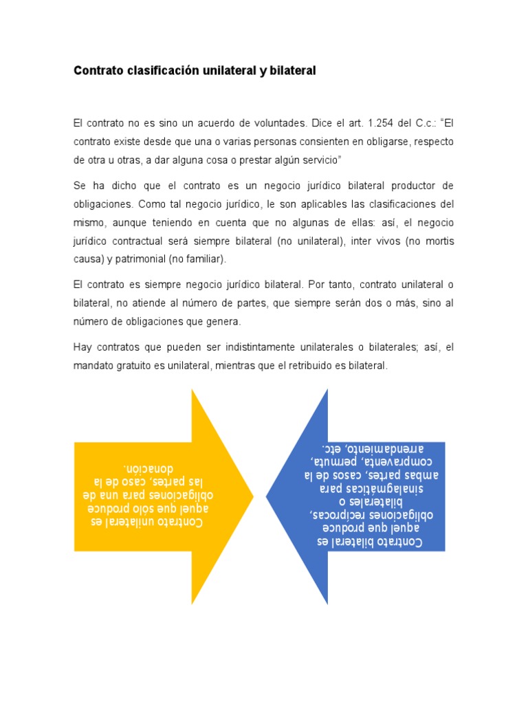 Contrato Clasificacion Unilateral Y Bilateral Ley De