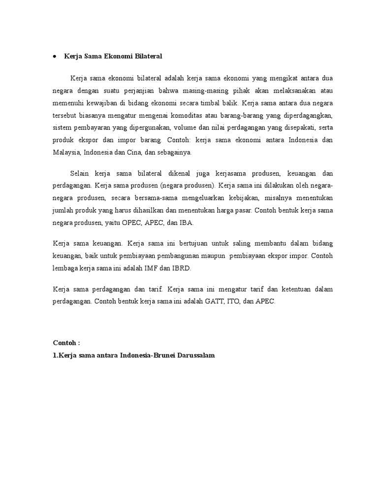Kerja Sama Ekonomi Bilateral Regional Dan Multilateral