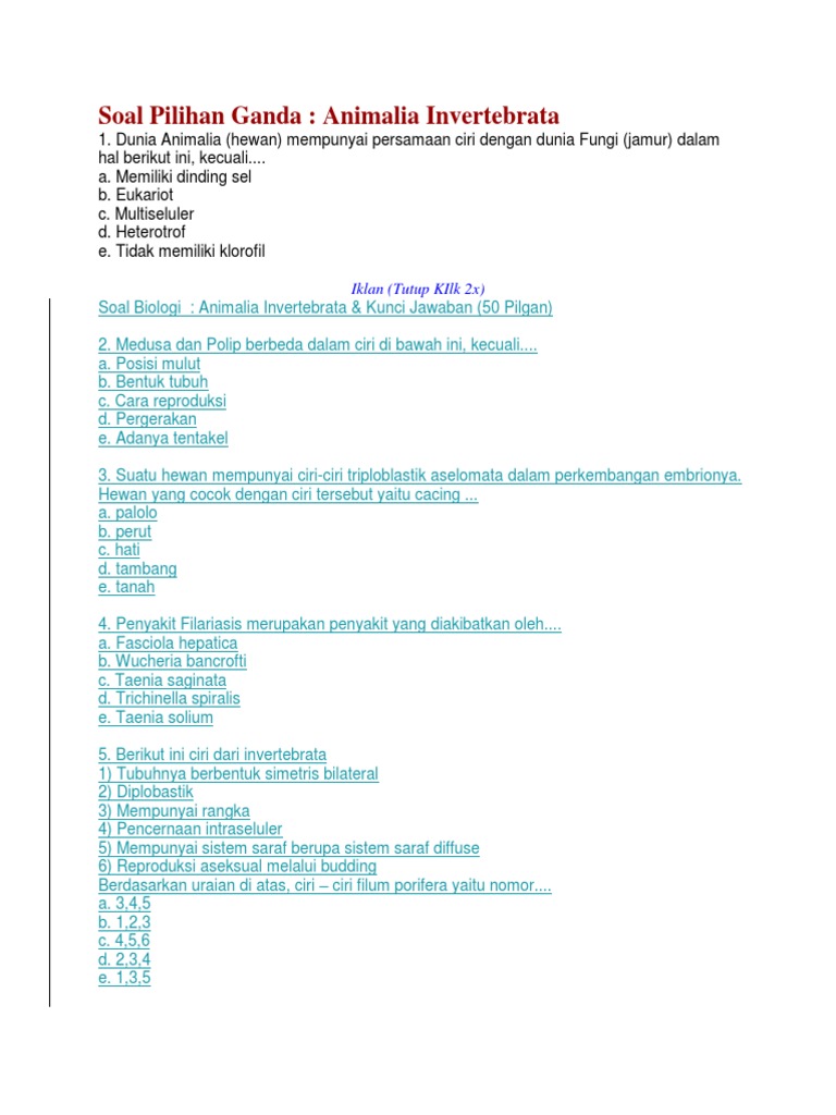 Soal Uh Kingdom Animalia Kunci Jawabannya Harmoni Biologi