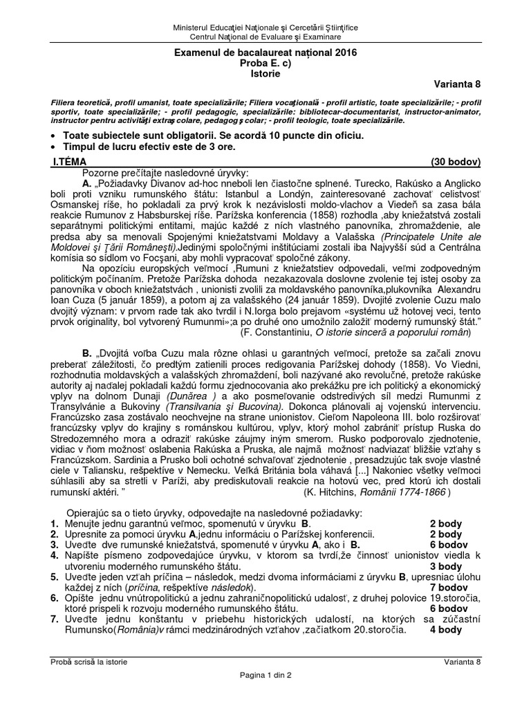 E C Istorie 2016 Var 08 Lsk