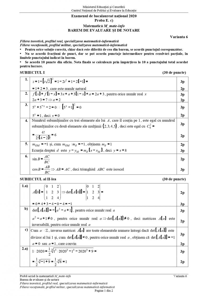 Update Bacalaureat 2020 Subiecte Si Bareme Matematica Ce A