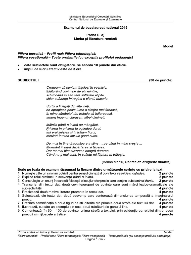 Model De Subiect La Limba Romană Real și Tehnologic Bac 2016