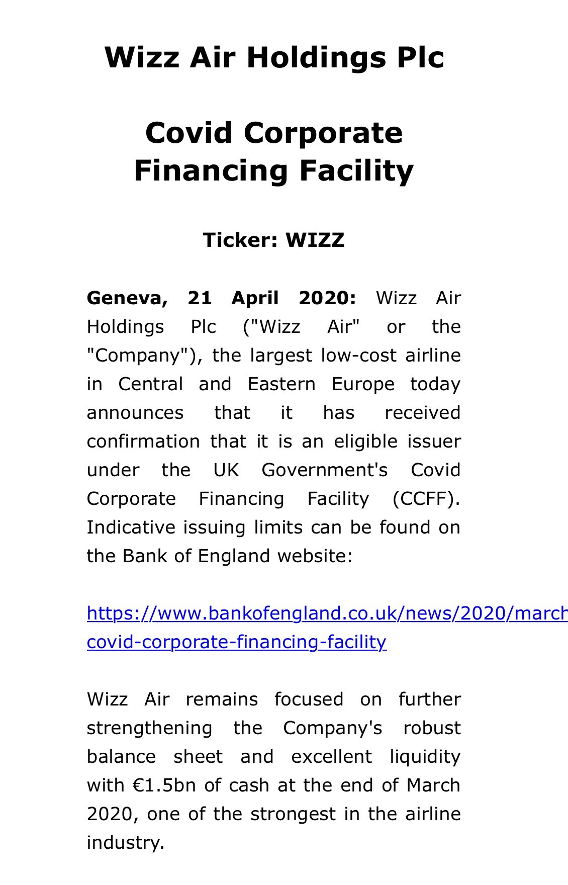 Wizz Air Eligible For Support Under Covid Financing Facility Sharecast Com