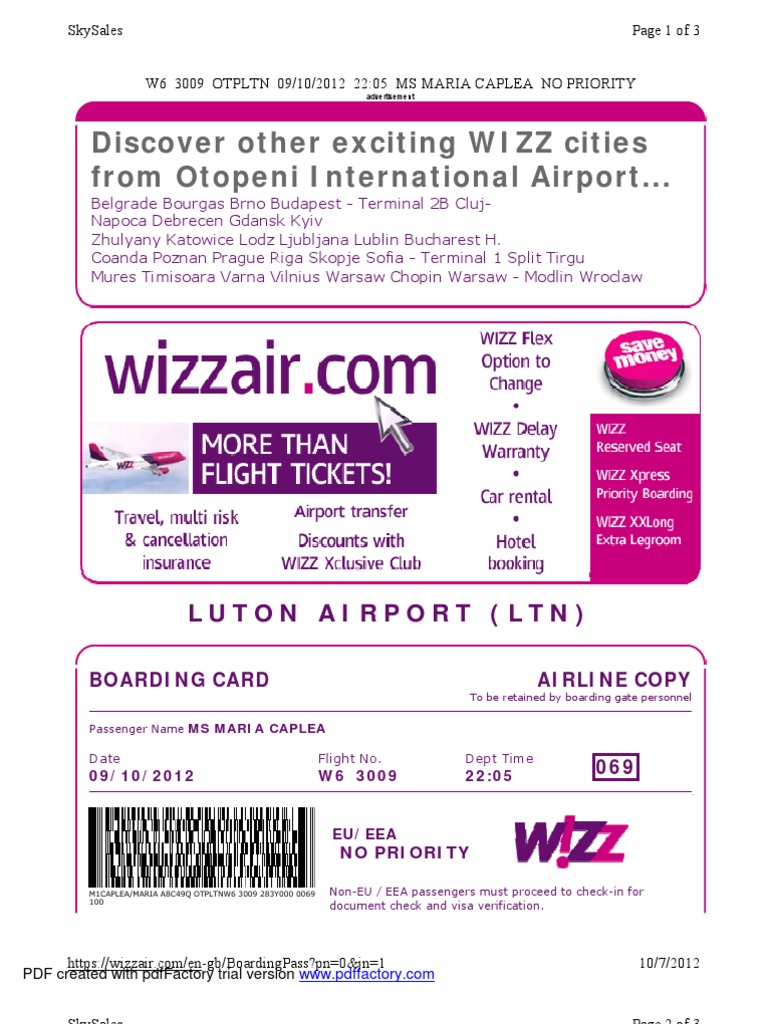 Wizz Air Online Boarding Pass